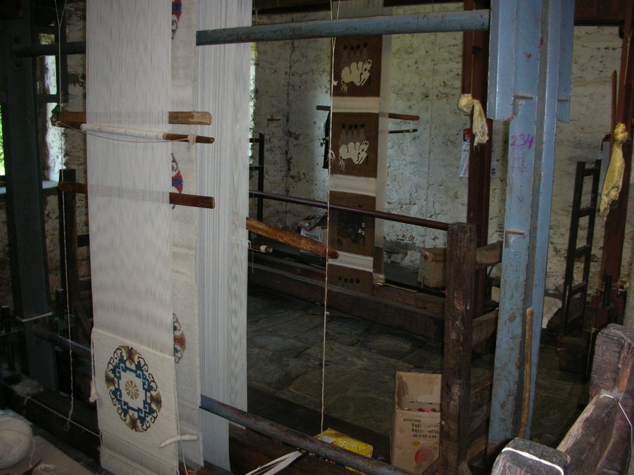 チベット難民の女性達が生活費のため絨毯を織っていた。